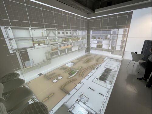 日建設計の XR STUDIO の見学に行ってきました。3面プロジェクタで構成されていて、様々なスケールで 3D モデルに没入できました。